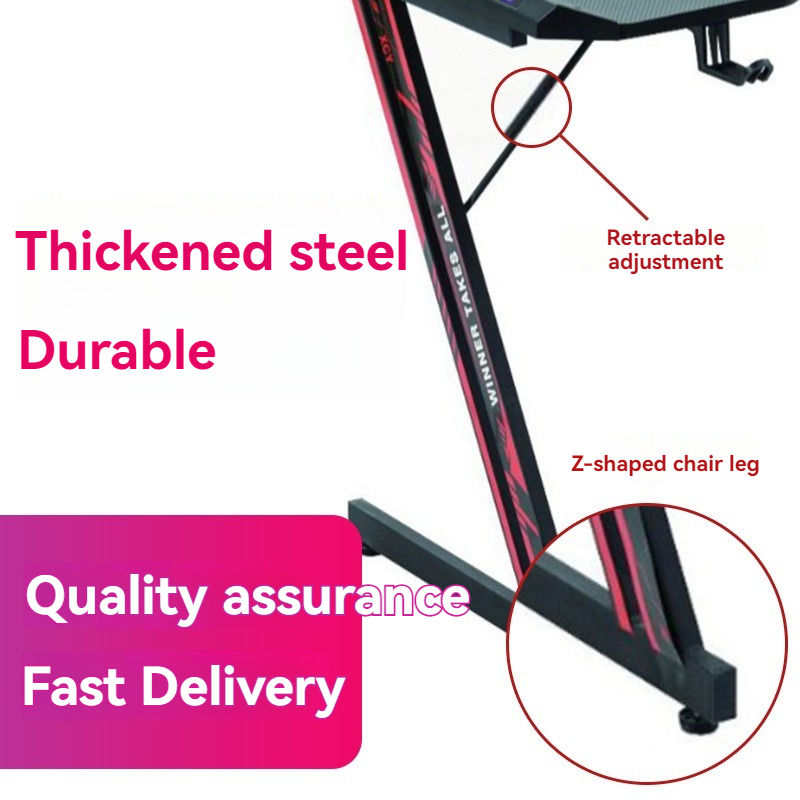 Upgrade your workspace with this sleek modern gaming and computer desk designed for performance, durability, and style. Featuring a carbon fiber textured desktop, sturdy Z-shaped steel frame, and RGB lighting accents, this desk is perfect for gamers, creators, and professionals who want a high-end setup.